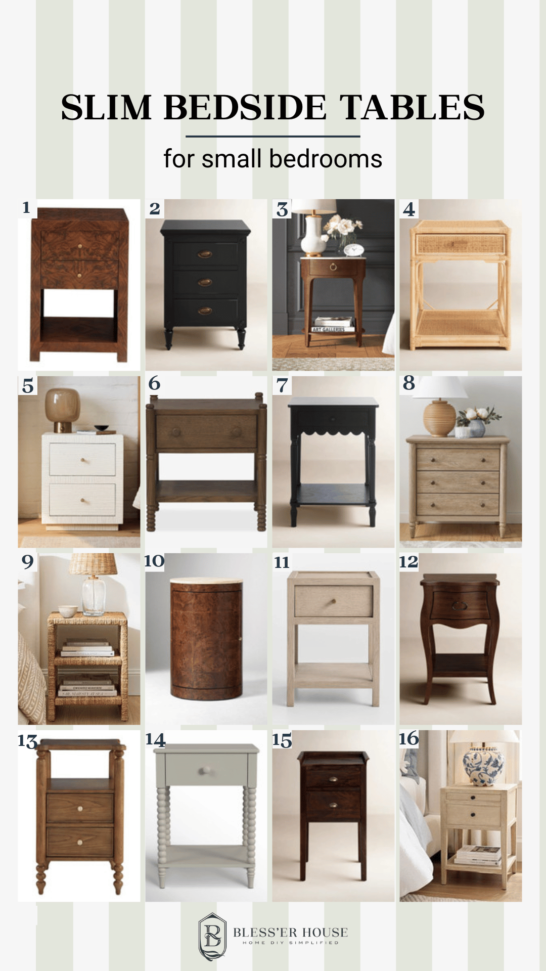 Since discovering “the one,” I rounded up 20+ trendy conventional slim bedside tables 20″ large or much less which are good for small bedrooms too.