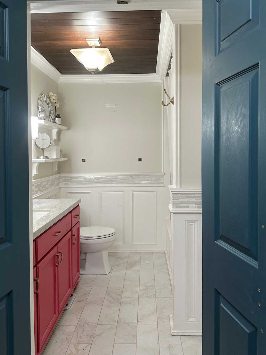 However now, plans have modified. The toilet will not be solely staying, however it is going to be our one and solely visitor toilet for now. I’m hoping that this can be non permanent and that we’ll finally be capable to construct an addition onto our home that features a model new (and extra centrally situated) full visitor toilet. However till that point, this would be the solely visitor toilet in our home. And even when that occurs, our plan is to maintain this toilet in my studio. So to get this toilet guest-ready, I have to…