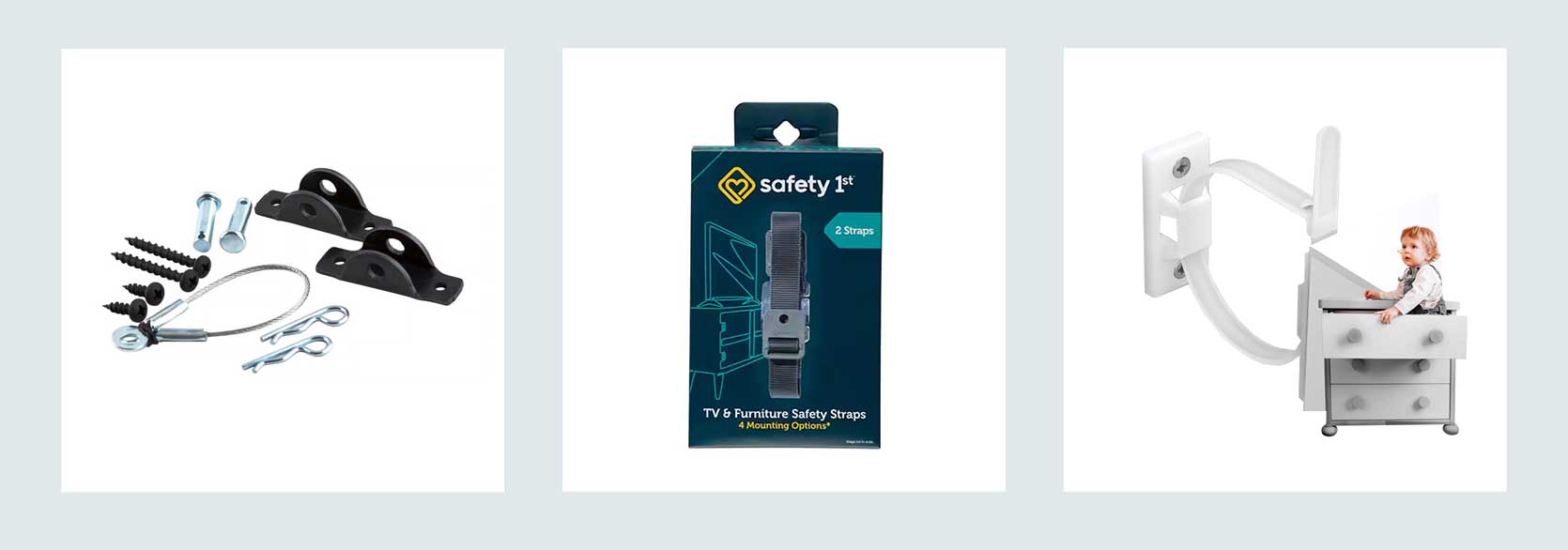 From Left: Hangman Black Furnishings Anti-Tip Equipment 400 lb 1 pk | TV & Furnishings Security Straps | 4our Kiddies Furnishings Straps (10 Pack) Child Proofing Anti Tip Furnishings Anchors Equipment