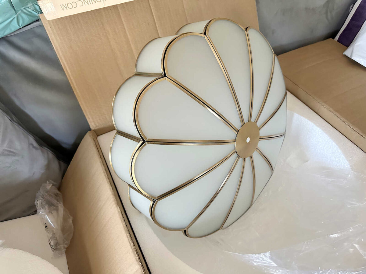 UPDATE: I forgot so as to add that the sunshine for the lobby was delivered, and it’s even prettier in individual than I had anticipated! I can’t wait to get this put in!