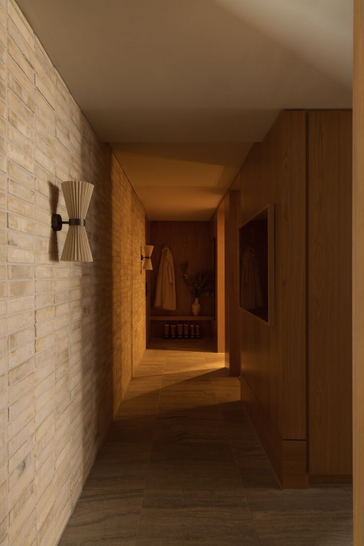 Above: “Design can solely be made stronger and extra compelling when it’s produced from collective minds,” writes Brem. Within the entry corridor, he launched matte-glazed pale bricks, wooden paneling, and travertine flooring tiles.