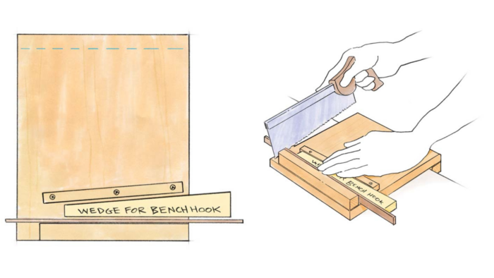 For those who add an angled cleat to your bench hook and minimize a wedge to the identical angle, the 2 mating elements will maintain elements securely whenever you’re sawing. That’s particularly useful when these elements are skinny and/or brief. Make the angle comparatively shallow, and the wedge will keep solidly in place. My solely difficulty has been remembering to not use the wedge for one thing else—therefore the observe in giant letters. By the way in which, I added this setup to the highest of my wooden toolbox as effectively, and it really works nice there too. —CARADOC WINSTON, Gloucester, England