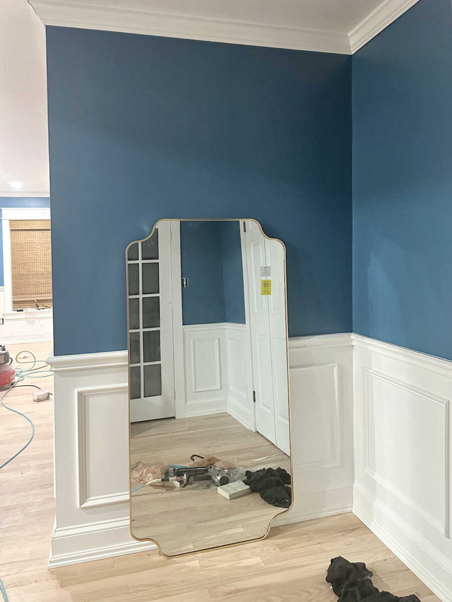 And in different information, I lastly introduced the brand new mirror in to see what it’ll appear like within the lobby. I believe it’s going to be so fairly! I simply must get the wiring run for the sconces that can flank the mirror.