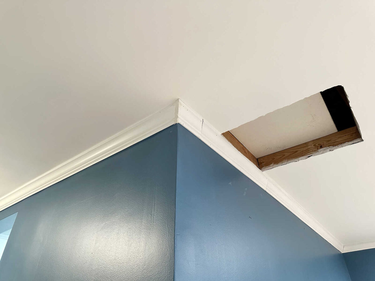 When you’ll bear in mind, right here’s how that hole appeared earlier than. It was approach too huge to fill with caulk. Consider me, in individual, it’s approach greater than it seems within the photograph.
