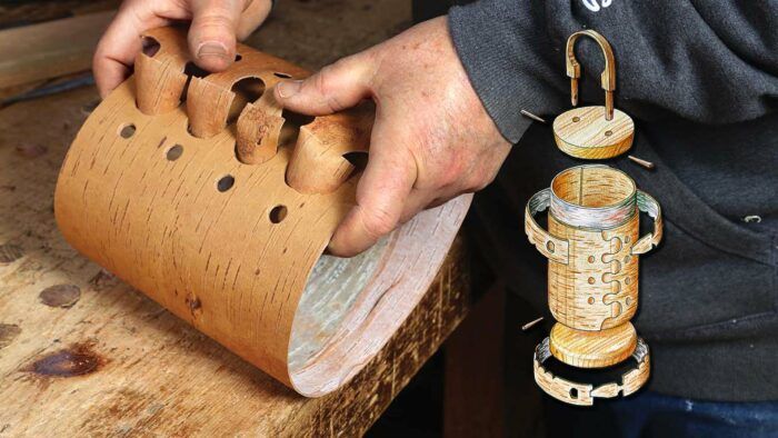 These containers have limitless makes use of, and their development is easy. The physique of the canister is 2 layers of bark, one inside the opposite. The skin layer has tabs and slots for joinery, whereas the within layer has no joinery. As soon as the underside and lid are in place, two narrower bands wrap across the prime and backside ends, including one other layer of ornament and enhancing the structural integrity.