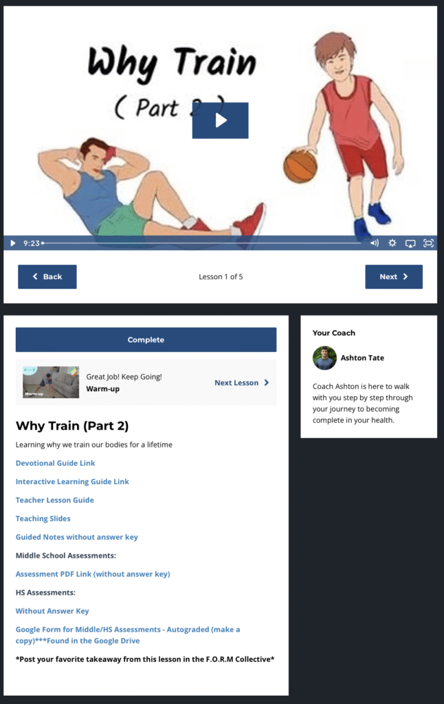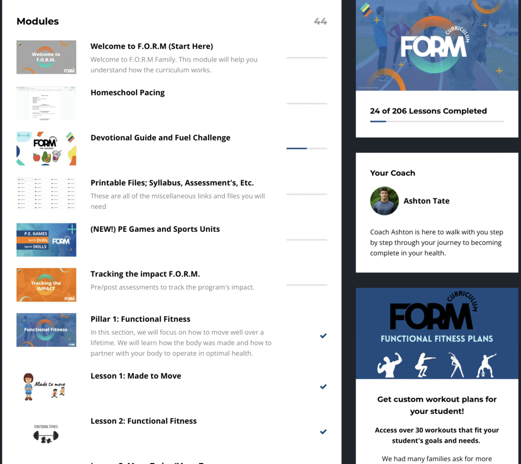 The F.O.R.M. Curriculum is organized into 32 core modules, with extra non-obligatory modules and dietary supplements for center and highschool college students.