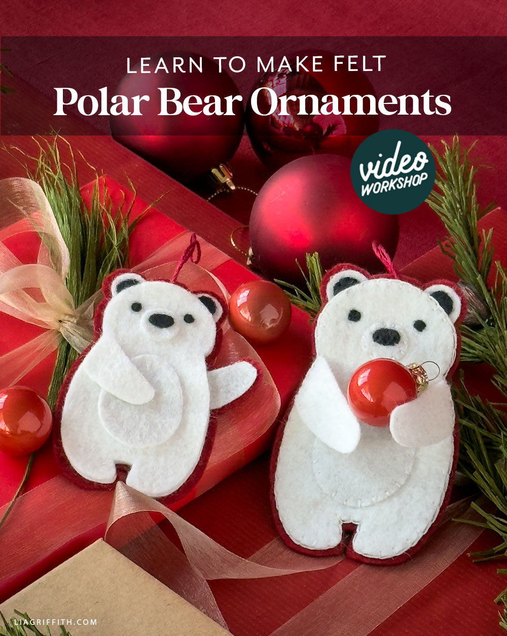 These good-looking Felt Polar Bear Ornaments are a part of our Artful Wonderland 2025 LIVE Workshop Collection occurring Thursday, November twentieth. Be a part of Lia and Emily at midday PT as they create this cute bear and our Felt Reindeer. We’ll craft collectively in actual time, and present you all the information and methods to convey your bear to life.