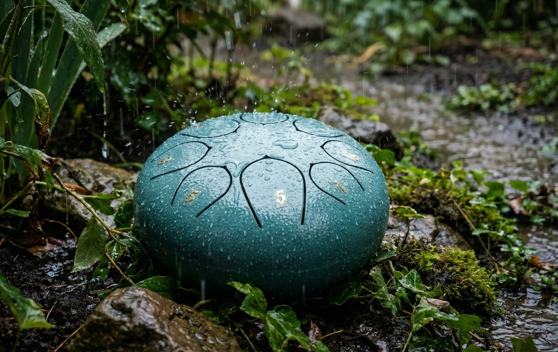 Rain drums are usually product of ceramic or steel and are available in a wide range of sizes, shapes, and thicknesses, giving each a singular pitch and tone.