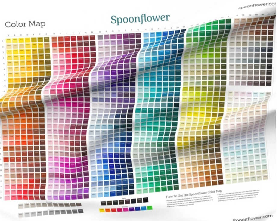 So I made a decision to make my very own. I’ve had this Spoonflower shade map for a number of years now, so I used that to match the colours in all of my materials, rug, and wallpaper. Every shade has a hex code on it so you realize what hex code to make use of as you’re designing your material. For those who’ve been round for some time, you may bear in mind this shade map from once I was engaged on my studio. At one time, I thought of framing this shade map and hanging it on the wall.