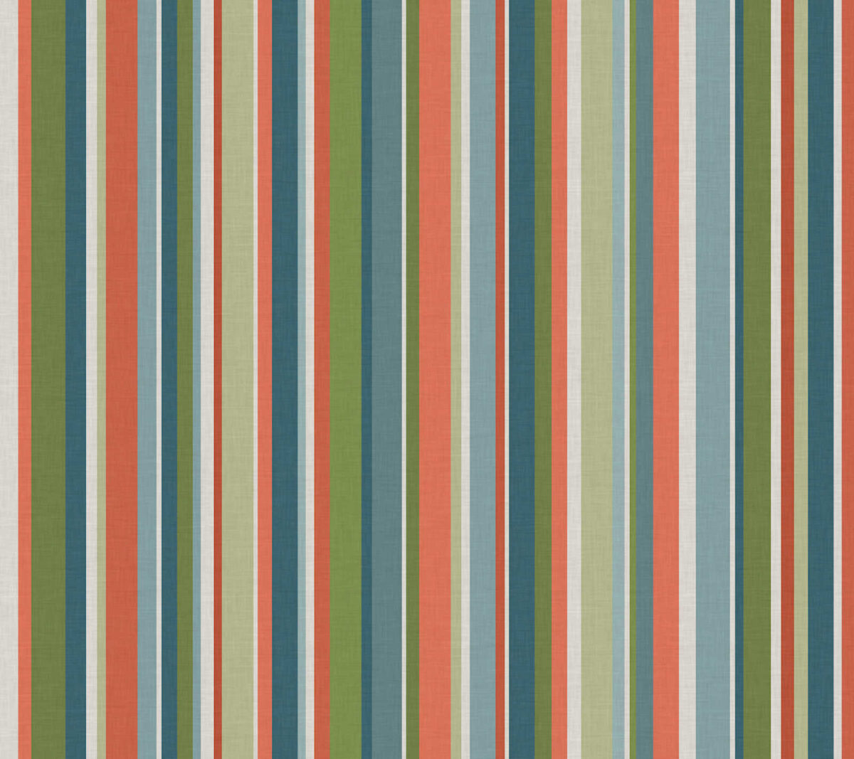 I used that software program, together with the hex codes from the colours on the Spoonflower shade map that I matched to our bed room objects, to create one horizontal repeat of a striped sample. These colours have been pulled from every little thing — the rug, the headboard material, the dresser shade, the hen material, and the material material. I went by way of a number of totally different iterations, testing out stripe widths (i.e., all the identical width vs. random widths), shade preparations, and so on. In spite of everything of these exams, I lastly selected this diversified width association of stripes. That is one repeat of the sample, and I created this one repeat at 13.5 inches vast, 12 inches excessive, and 150 pixels/inch.