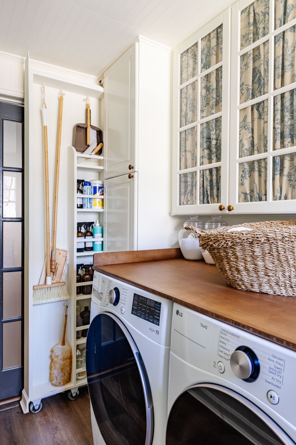 At first look, it appears like a part of the wall. No super-visible deal with. No apparent door. Simply clear traces and beadboard that blends proper in. However pull it out, and it neatly shops our broom, mop, and cleansing provides with out stealing precious area.