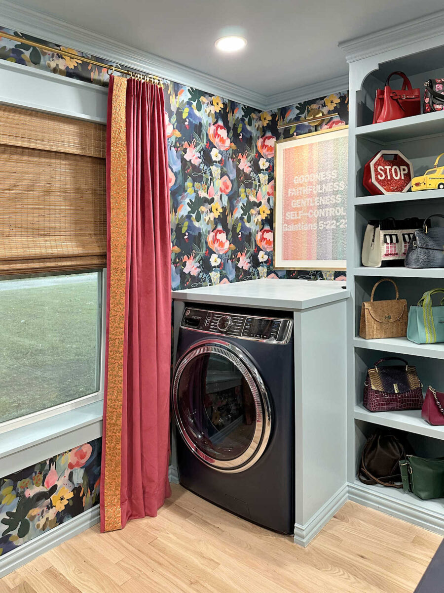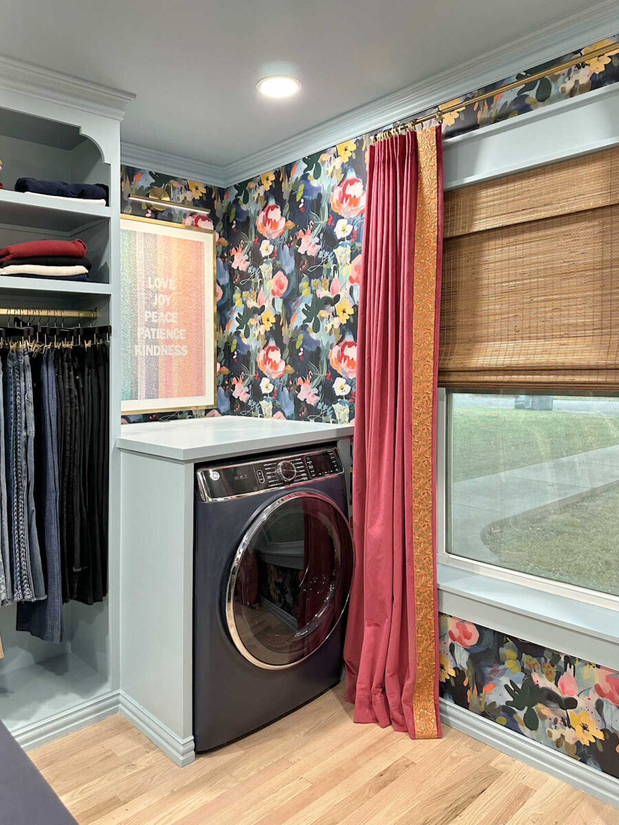 I introduced the curtains into the closet and draped them over a ladder for a couple of days so I may see them an decide. In spite of everything, I wanted to drill holes into the wallpaper if I needed to hold curtains in right here, so I didn’t need to make a rash resolution. However the extra I noticed them in right here, the extra I beloved them. So yesterday, I lastly hung the curtains, and I really like them a lot!