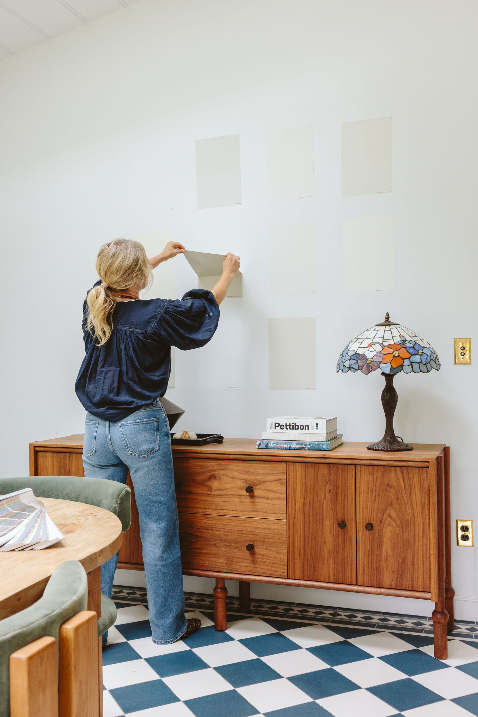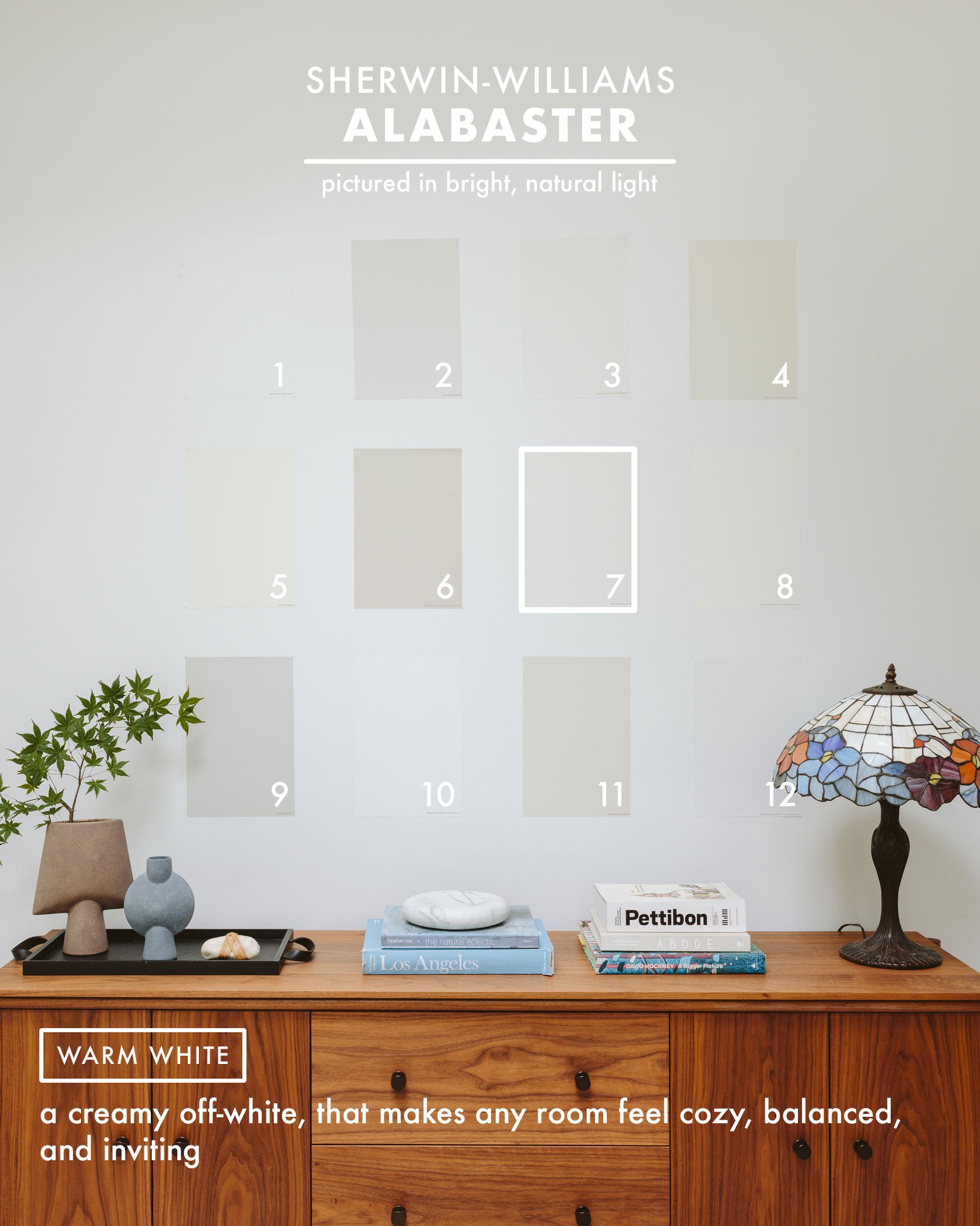 I completely love how Alabaster seems to be in each room of their home – the truth is, I’d go so far as to say that if anyone requested me on the road what a no-fail good white is, with out seeing their home, I’d inform them Alabaster. We checked out it with the wooden flooring and moved the Samplize sticker round in lots of rooms of their home, however it labored in each single considered one of them. It’s so stable and fairly, with a barely creamy taupe undertone that makes a room really feel actually balanced and alluring.