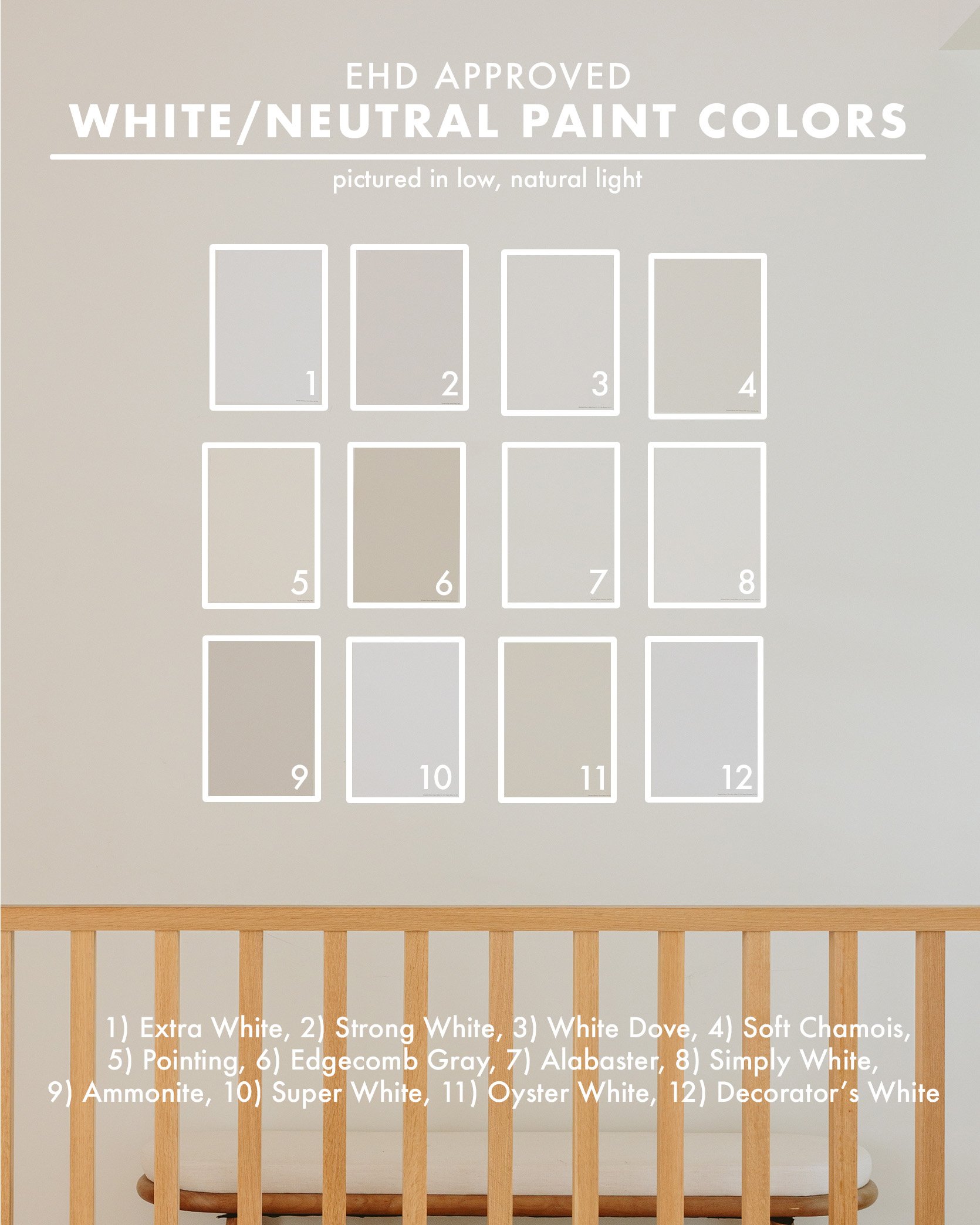 Whites or gentle neutrals are tougher for me (and anybody, actually) as a result of it’s SO exhausting to see the undertones on a small paint pattern. Moreover, the fallacious white in a low-light room can look so unhappy and lifeless, whereas the fitting one can carry heat and dimension. All of the samples we tried truly look so gentle and white as soon as the entire room is painted, however as you’ll be able to see above, some are a lot darker!