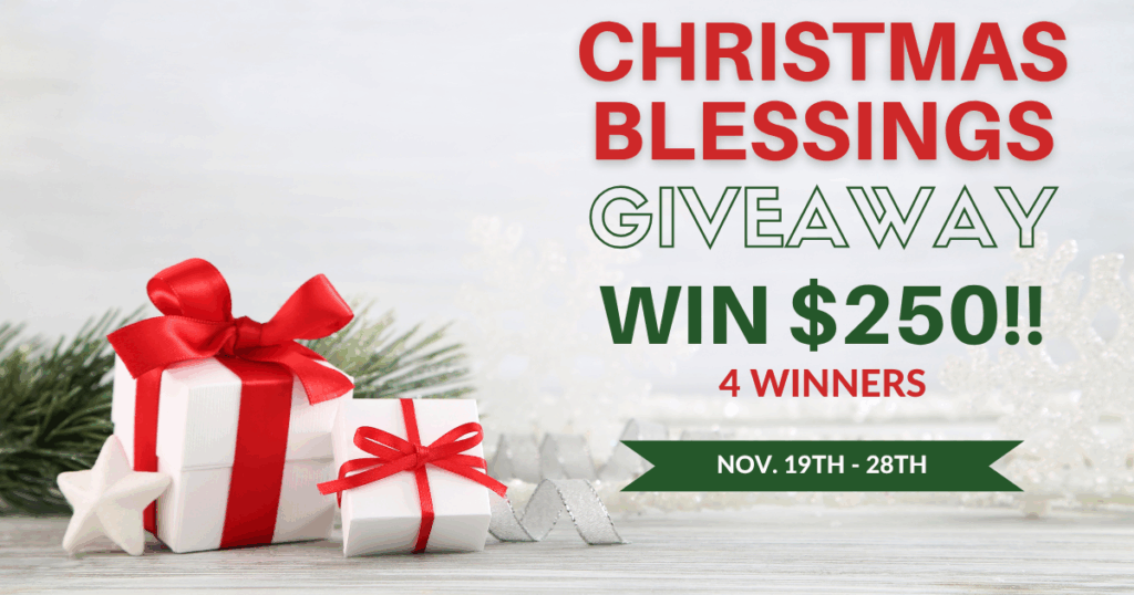 I’ve partnered with an exquisite group of bloggers to carry you the Christmas Blessings Giveaway. We all know the vacation season will be stuffed with each pleasure and stress, and our hope is to ease that burden only a bit for a couple of households. We’re gifting away FOUR $250 reward playing cards, and one of the best half is that every winner will get to decide on the place the reward card is from. Whether or not it helps with presents, groceries, or one thing particular for you, we pray it brings encouragement and peace this Christmas.