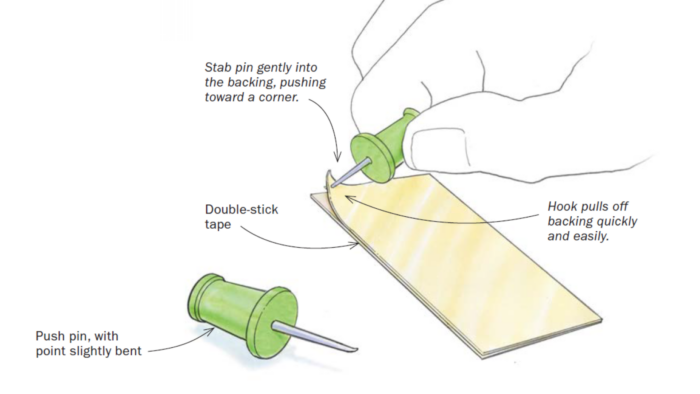 Push Pin Peels Backing off Double-Stick Tape