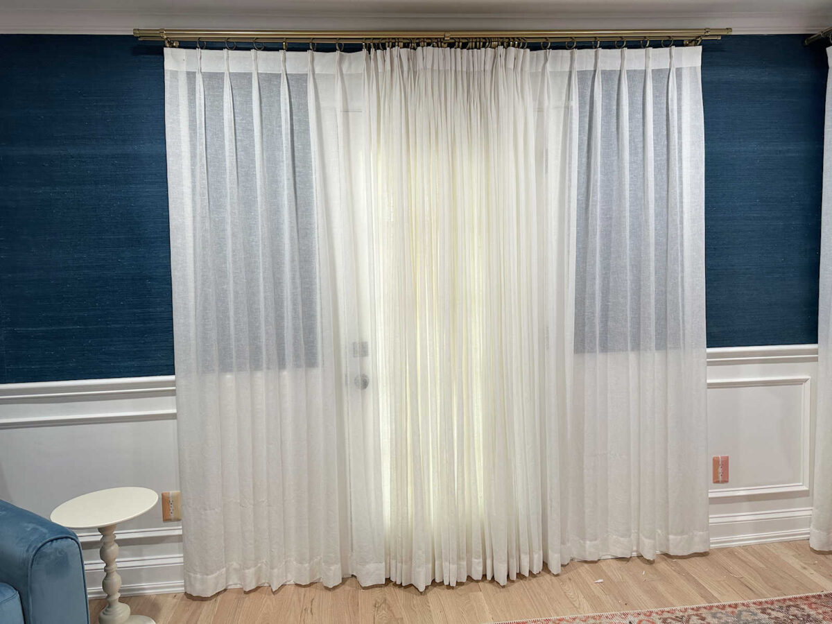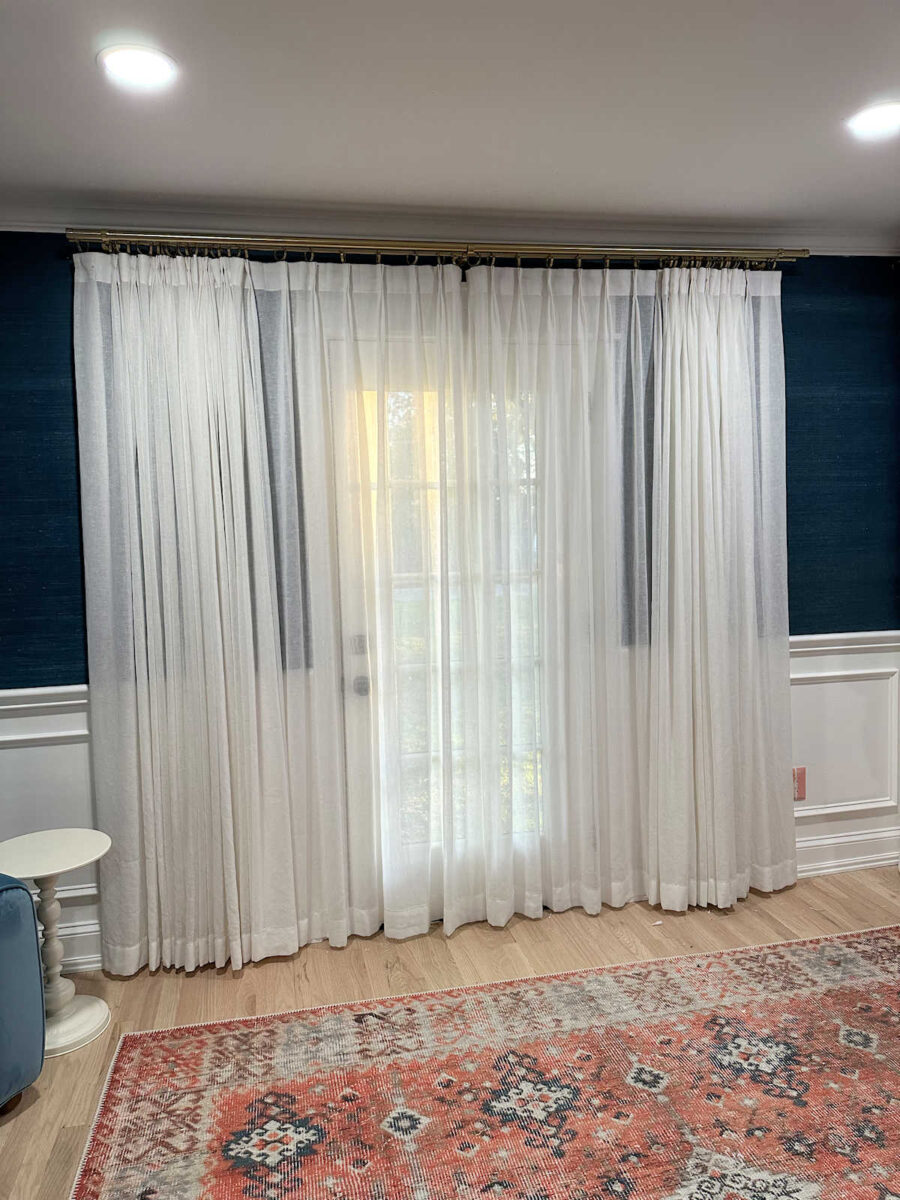 So it seems to be like we’ll be capable of have the wanted privateness at evening, and I’ll be capable of hold the glass free and clear with no privateness movie required in order that I can see out the door. Initially, I used to be actually bothered by the truth that these are a bit too brief. In case you’ll keep in mind, the ground on this room is probably the most unlevel flooring in our whole home, and that is the low facet (basically, it’s decrease, however the suitable nook is excessive). I used to be contemplating rehemming them in order that they’re the size I choose, which is about 1/4″ above the ground. But when I’m going to be opening and shutting them daily, and the majority of them can be behind the velvet draperies, I feel I’d simply reside with this size. You may let me know what you assume. They’re about an inch off of the ground.