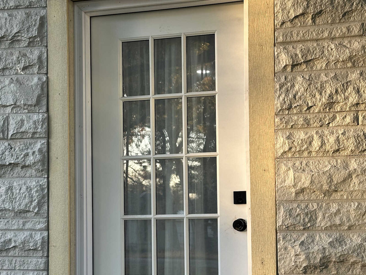 First, I’ve been questioning what I’d do with the door within the bed room to offer us privateness. I completely love having this new door within the bed room, but it surely’s on the entrance of our home, which makes privateness a difficulty. I don’t like shades connected to door, in order that wasn’t an choice for me. After all, I may all the time fall again to my go-to answer and use the privateness movie, however I actually love the choice of having the ability to see clearly by this door.