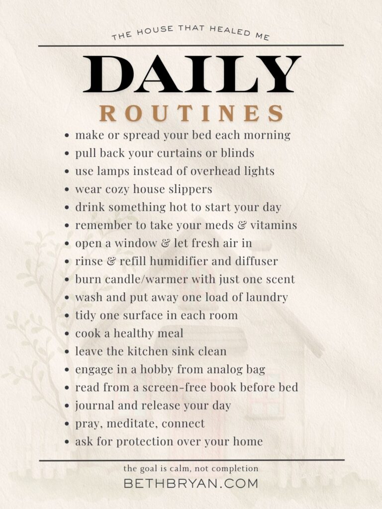 Each day routines gently practice your nervous system towards peace. Consider it as ringing the bell for Pavlov’s canine, however with candles and clear counter tops.