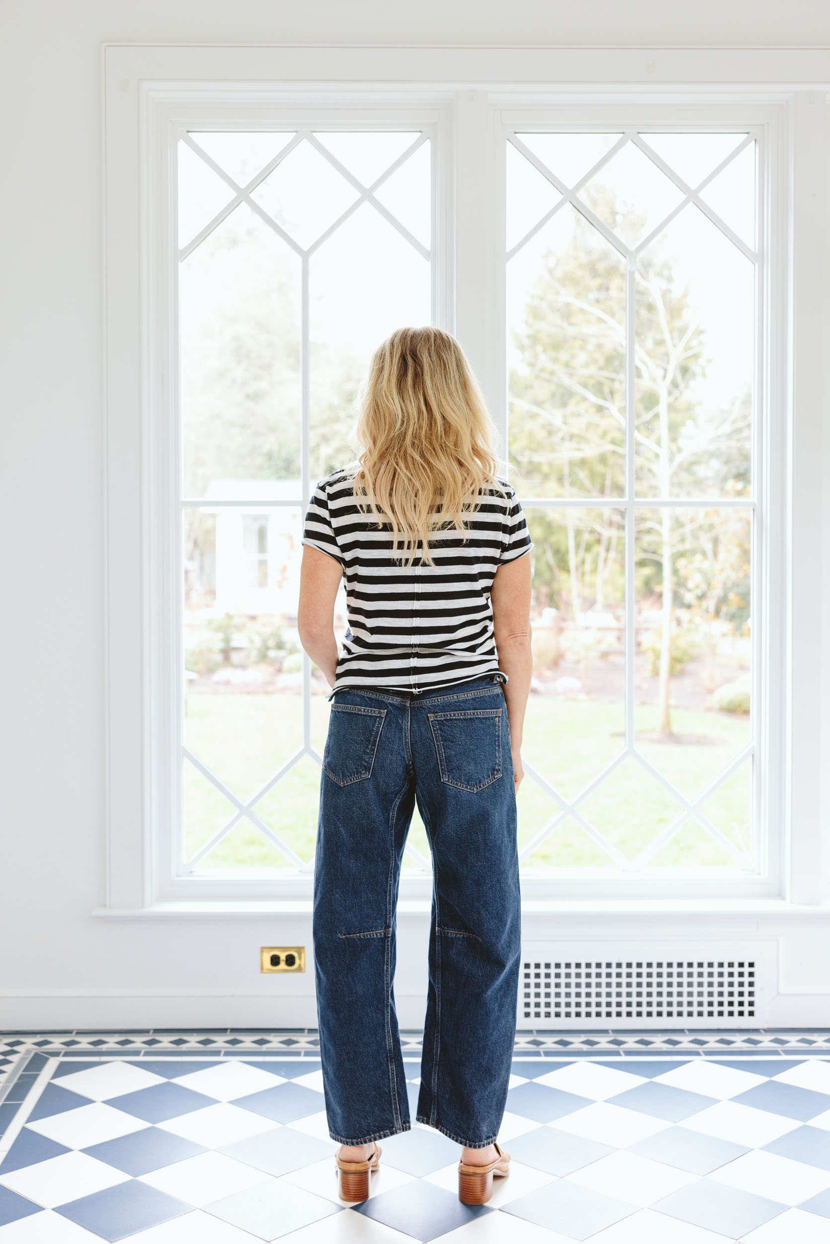 These are the J. Crew Barrel Zoe in measurement 27. They’re a barrel form and not using a dart. They appear extraordinarily tailor-made and well-made as a result of they’ve a pleasant, inflexible form with actually good proportions. I like love love the wash, they actually nailed the fading on the thighs with out being an excessive amount of and never an excessive amount of whiskering. These are mid-rise however really feel fairly high-rise to me, FYI, however not mad at it. The pocket has a pleasant slant element, and the seams have good distinction with a tan thread that feels traditional. Strong YES for me in-store, and I really feel like I’m going to put on them a ton this spring, each dressed up and down.