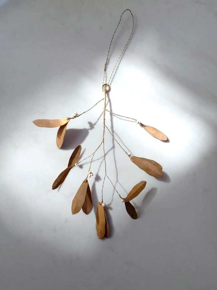 Above: These fairly, subtly festive brass leaves add a wink of gold to the tree. Store now.