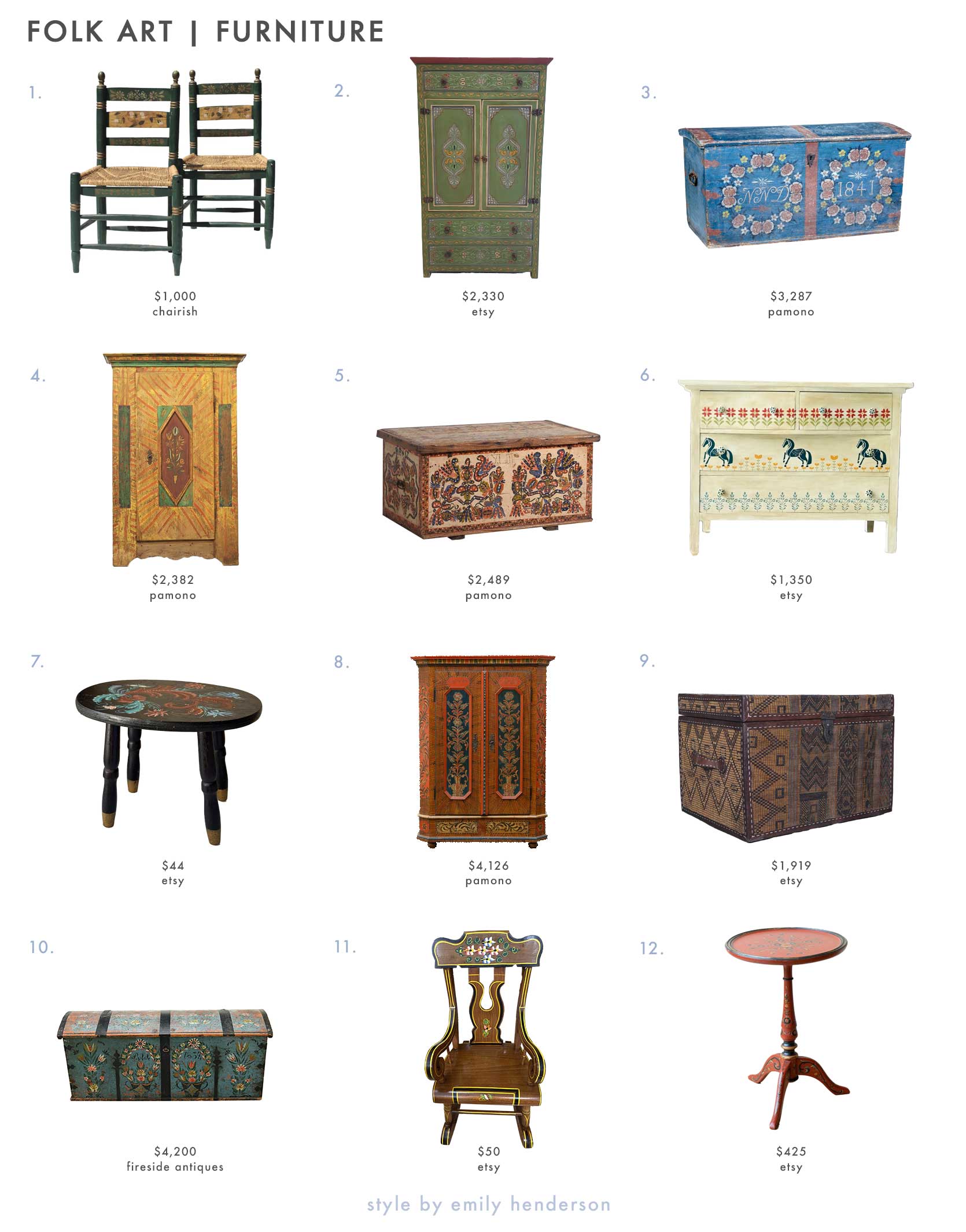 As you may see from the costs above, vintage people artwork furnishings is, uh, costly (very like all different antiques generally). However I needed to incorporate all of those, even when not a single reader is out there for a $4,200 Swedish Nineteenth-century painted pine marriage trunk, to coach your eye a bit in what this stuff appear to be and what kinds of items exist. You by no means know what you would possibly come upon on Craigslist, flea markets, storage gross sales and the like, and realizing what to search for is half the battle.