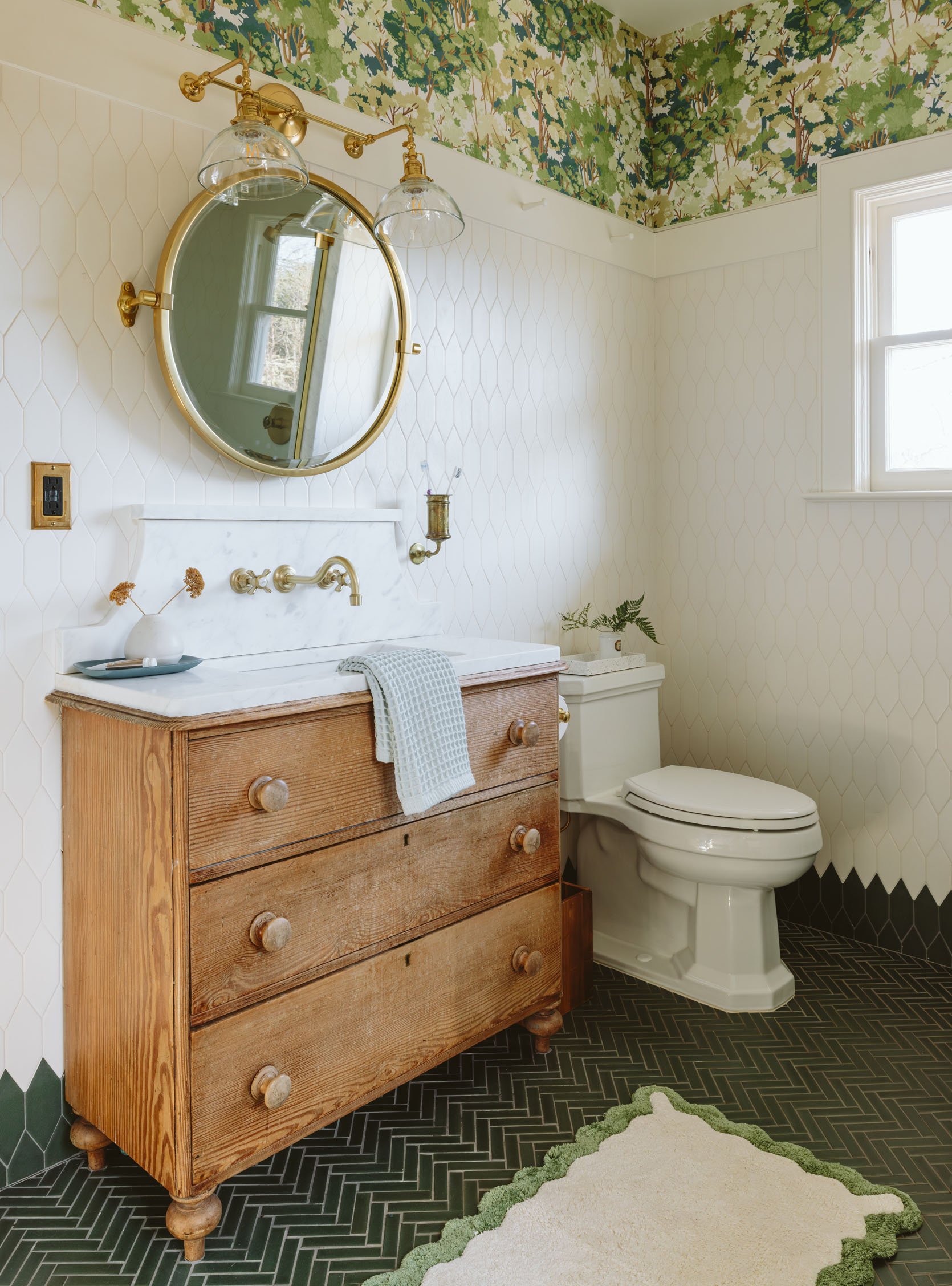 picture by kaitlin inexperienced | from: a contemporary conventional inexperienced tiled toilet (with a final minute sink pivot)