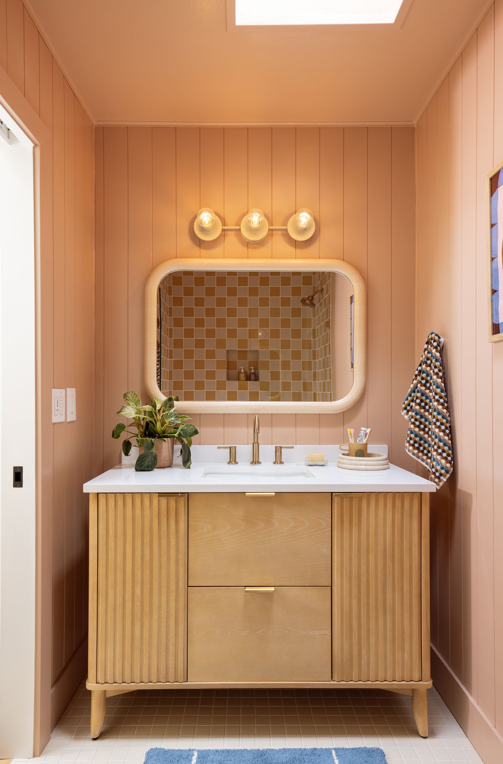Kaitlin then tackled her loos in her Nineteen Seventies home that appeared so good, so her and so applicable. She doesn’t know which one she loves extra – their toilet (above) or her women (beneath).