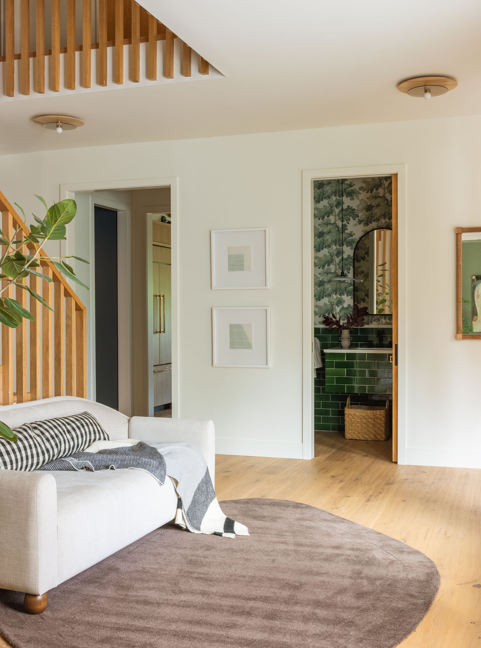 Again to the river home, we began doing the larger reveals of the primary ground. We really shot the lounge, kitchen, eating room, workplace, and so on, first, however we needed to maintain these reveals for the massive home characteristic. So this household room was revealed first (and boy, do I like it). The coziest Bennet sectional FTW.